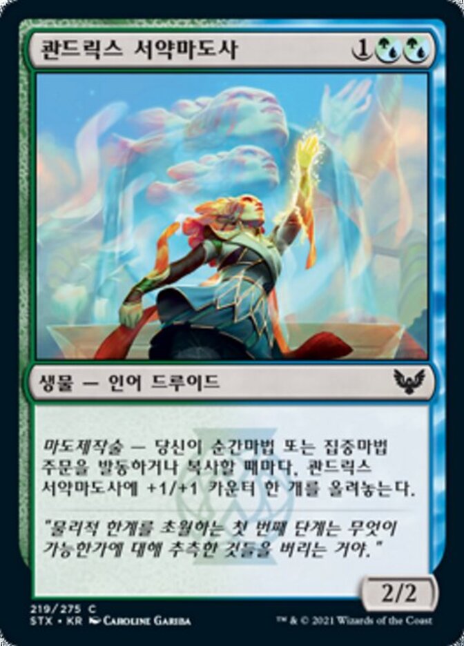 | Rules | Magecraft — Whenever you cast or copy an instant or sorcery spell, put a +1/+1 counter on Quandrix Pledgemage. |
