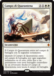 | Rules | Quarantine Field enters the battlefield with X isolation counters on it. When Quarantine Field enters the battlefield, for each isolation counter on it, exile up to one target nonland permanent an opponent controls until Quarantine Field leaves the battlefield. |