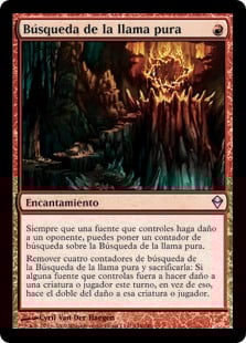| Rules | Whenever a source you control deals damage to an opponent, you may put a quest counter on Quest for Pure Flame. Remove four quest counters from Quest for Pure Flame and sacrifice it: If any source you control would deal damage to a permanent or player this turn, it deals double that damage to that permanent or player instead. |