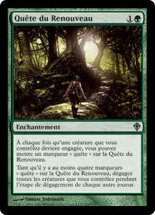 | Rules | Whenever a creature you control becomes tapped, you may put a quest counter on Quest for Renewal. As long as there are four or more quest counters on Quest for Renewal, untap all creatures you control during each other player's untap step. |