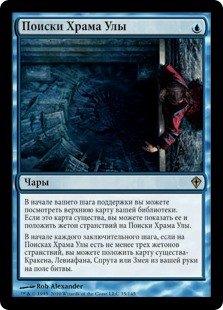 | Rules | At the beginning of your upkeep, you may look at the top card of your library. If it's a creature card, you may reveal it and put a quest counter on Quest for Ula's Temple. At the beginning of each end step, if there are three or more quest counters on Quest for Ula's Temple, you may put a Kraken, Leviathan, Octopus, or Serpent creature card from your hand onto the battlefield. |