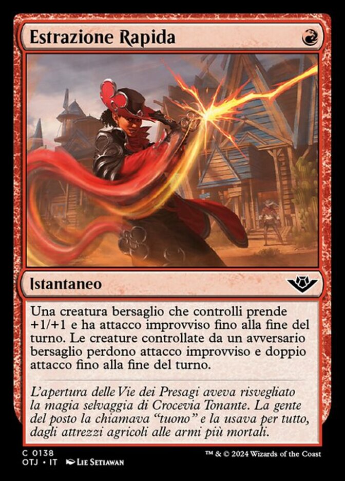 | Flavor | The opening of the Omenpaths awoke the wild magic of Thunder Junction. Settlers dubbed it "thunder" and put it to use in everything from farming tools to deadly weapons. |