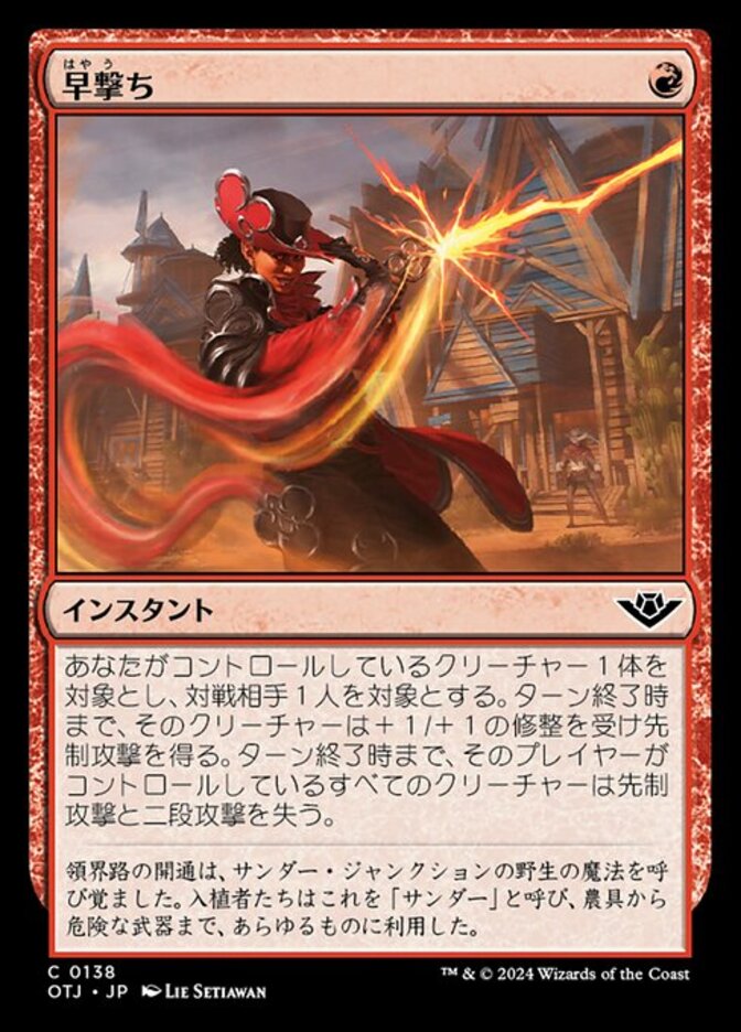 | Flavor | The opening of the Omenpaths awoke the wild magic of Thunder Junction. Settlers dubbed it "thunder" and put it to use in everything from farming tools to deadly weapons. |