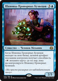 Rules When Quicksmith Spy enters the battlefield, target artifact you control gains ": Draw a card" for as long as you control Quicksmith Spy.