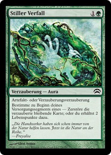 | Rules | Enchant artifact or enchantment At the beginning of your upkeep, choose one — • Destroy enchanted permanent. • You gain 2 life. |
