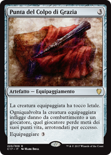 | Rules | Equipped creature has deathtouch. Whenever equipped creature deals combat damage to a player, that player loses half their life, rounded up. Equip |