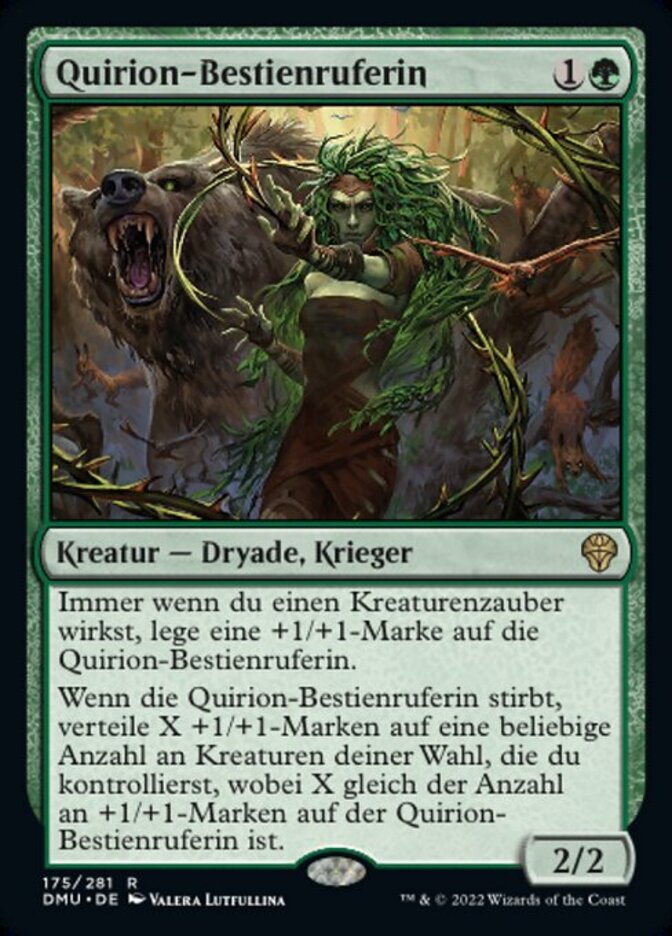 | Rules | Whenever you cast a creature spell, put a +1/+1 counter on Quirion Beastcaller. When Quirion Beastcaller dies, distribute X +1/+1 counters among any number of target creatures you control, where X is the number of +1/+1 counters on Quirion Beastcaller. |