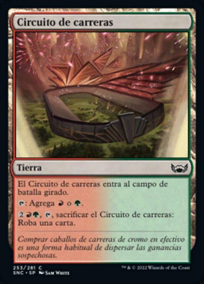 | Rules | Racers' Ring enters the battlefield tapped. : Add or . , , Sacrifice Racers' Ring: Draw a card. |
