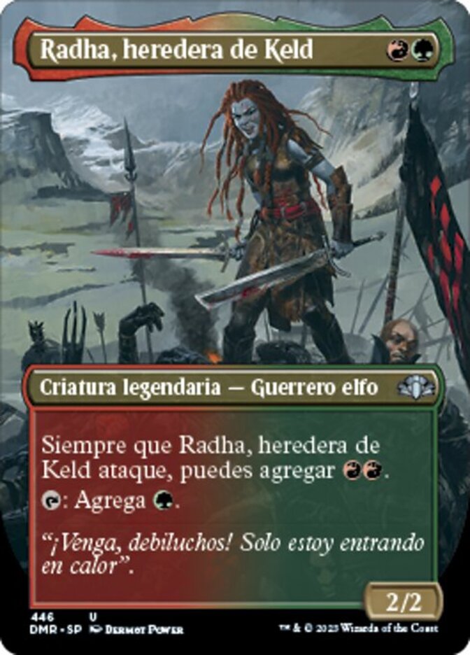 | Rules | Whenever Radha, Heir to Keld attacks, you may add . : Add . |