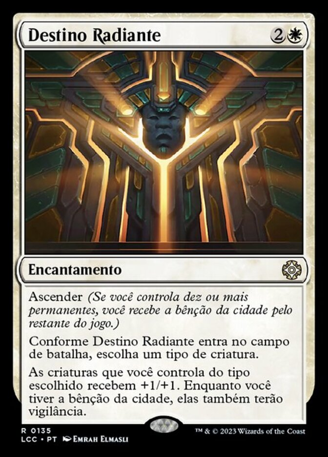 | Rules | Ascend (If you control ten or more permanents, you get the city's blessing for the rest of the game.) As Radiant Destiny enters the battlefield, choose a creature type. Creatures you control of the chosen type get +1/+1. As long as you have the city's blessing, they also have vigilance. |