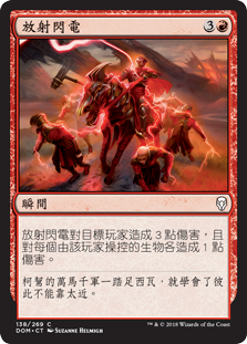 | Rules | Radiating Lightning deals 3 damage to target player and 1 damage to each creature that player controls. |