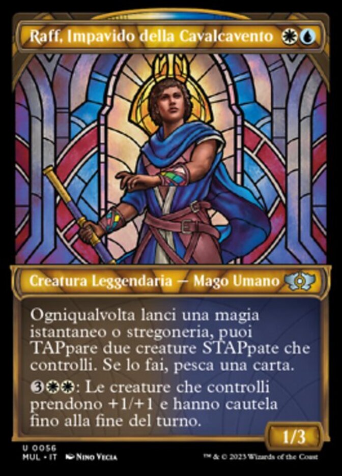 | Rules | Whenever you cast an instant or sorcery spell, you may tap two untapped creatures you control. If you do, draw a card. : Creatures you control get +1/+1 and gain vigilance until end of turn. |
