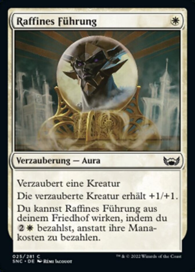 | Rules | Enchant creature Enchanted creature gets +1/+1. You may cast Raffine's Guidance from your graveyard by paying rather than paying its mana cost. |