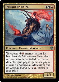 Rules Minotaur spells you cast cost less to cast. This effect reduces only the amount of colored mana you pay. (For example, if you cast a Minotaur spell with mana cost , it costs to cast.)