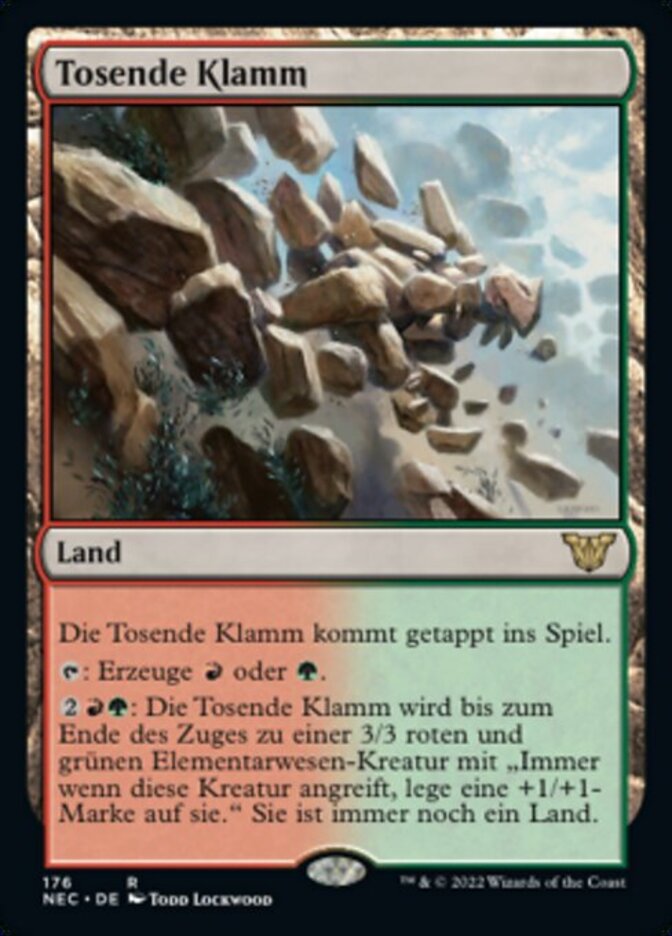 | Rules | Raging Ravine enters the battlefield tapped. : Add or . : Until end of turn, Raging Ravine becomes a 3/3 red and green Elemental creature with "Whenever this creature attacks, put a +1/+1 counter on it." It's still a land. |