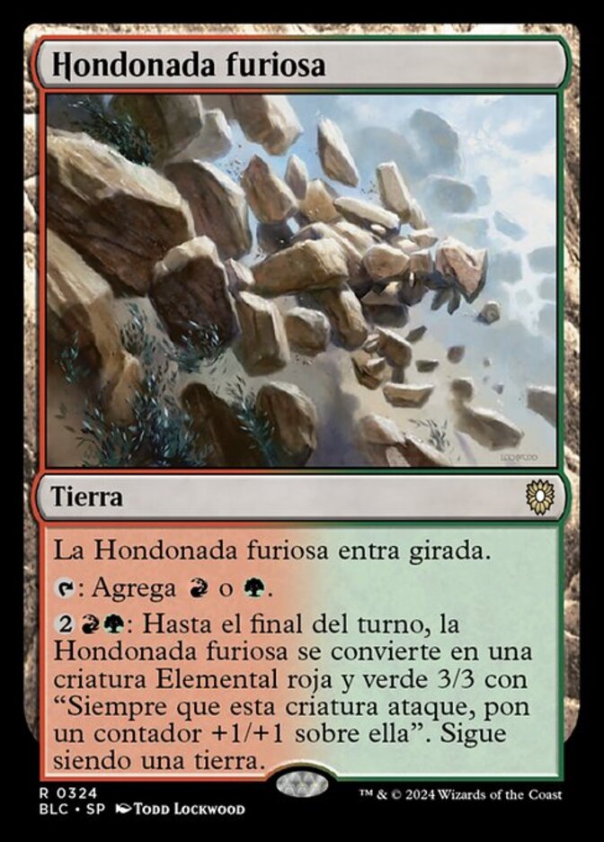 | Rules | Raging Ravine enters the battlefield tapped. : Add or . : Until end of turn, Raging Ravine becomes a 3/3 red and green Elemental creature with "Whenever this creature attacks, put a +1/+1 counter on it." It's still a land. |