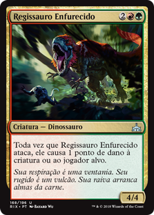 | Rules | Whenever Raging Regisaur attacks, it deals 1 damage to any target. |
