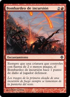 | Rules | Whenever a creature you control with power 2 or less attacks, Raid Bombardment deals 1 damage to the player or planeswalker that creature is attacking. |