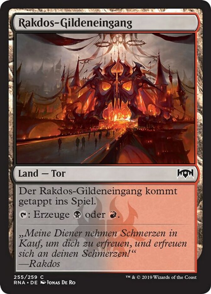| Rules | Rakdos Guildgate enters the battlefield tapped. : Add or . |