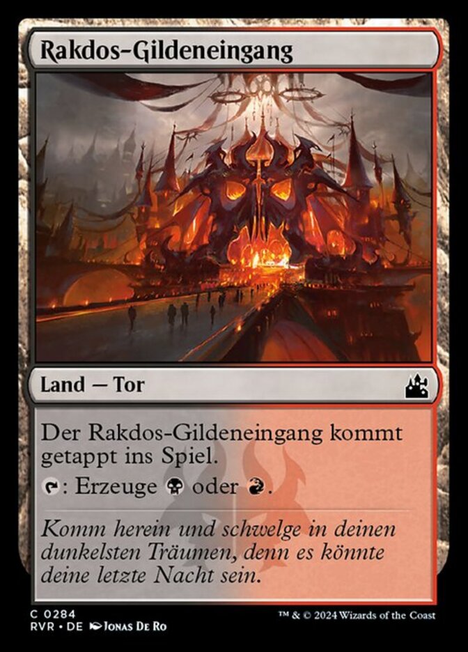 | Rules | Rakdos Guildgate enters the battlefield tapped. : Add or . |