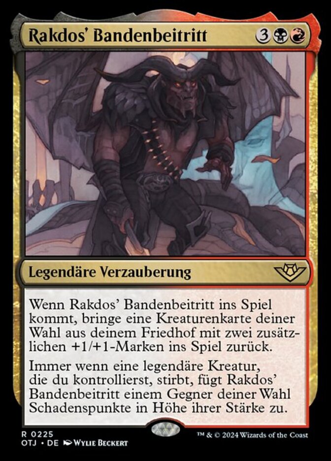 | Rules | When Rakdos Joins Up enters the battlefield, return target creature card from your graveyard to the battlefield with two additional +1/+1 counters on it. Whenever a legendary creature you control dies, Rakdos Joins Up deals damage equal to that creature's power to target opponent. |