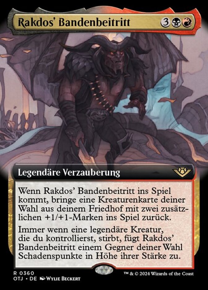 | Rules | When Rakdos Joins Up enters the battlefield, return target creature card from your graveyard to the battlefield with two additional +1/+1 counters on it. Whenever a legendary creature you control dies, Rakdos Joins Up deals damage equal to that creature's power to target opponent. |