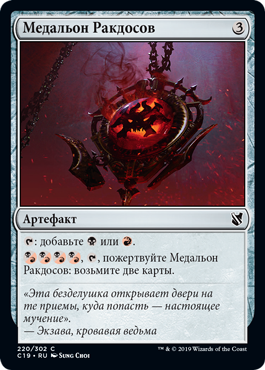 | Rules | : Add or . , , Sacrifice Rakdos Locket: Draw two cards. |