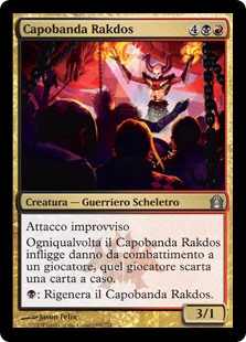 | Rules | First strike Whenever Rakdos Ringleader deals combat damage to a player, that player discards a card at random. : Regenerate Rakdos Ringleader. |