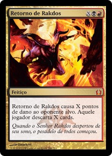 | Rules | Rakdos's Return deals X damage to target opponent or planeswalker. That player or that planeswalker's controller discards X cards. |