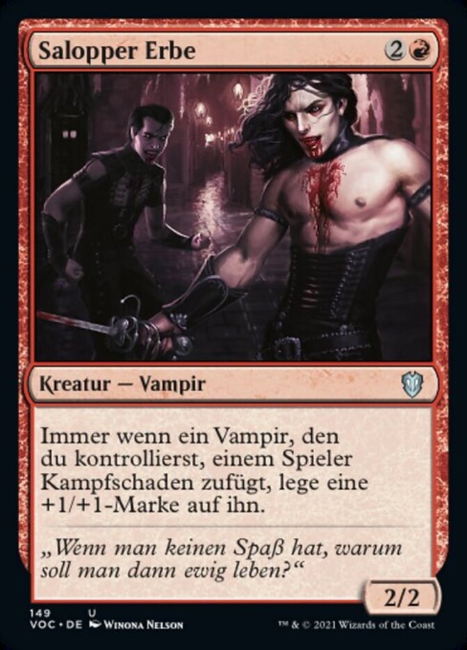 | Rules | Whenever a Vampire you control deals combat damage to a player, put a +1/+1 counter on it. |