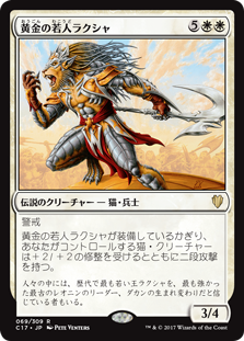 | Rules | Vigilance As long as Raksha Golden Cub is equipped, Cat creatures you control get +2/+2 and have double strike. |