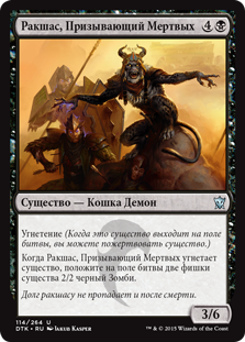 | Rules | Exploit (When this creature enters the battlefield, you may sacrifice a creature.) When Rakshasa Gravecaller exploits a creature, create two 2/2 black Zombie creature tokens. |