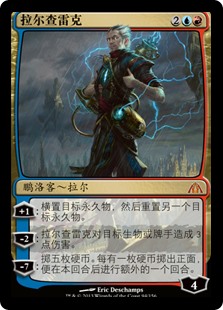| Rules | +1: Tap target permanent, then untap another target permanent. −2: Ral Zarek deals 3 damage to any target. −7: Flip five coins. Take an extra turn after this one for each coin that comes up heads. |