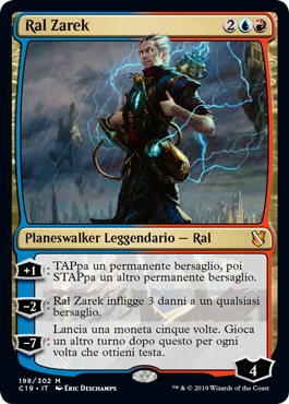 | Rules | +1: Tap target permanent, then untap another target permanent. −2: Ral Zarek deals 3 damage to any target. −7: Flip five coins. Take an extra turn after this one for each coin that comes up heads. |
