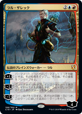 | Rules | +1: Tap target permanent, then untap another target permanent. −2: Ral Zarek deals 3 damage to any target. −7: Flip five coins. Take an extra turn after this one for each coin that comes up heads. |