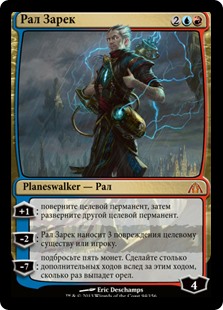 | Rules | +1: Tap target permanent, then untap another target permanent. −2: Ral Zarek deals 3 damage to any target. −7: Flip five coins. Take an extra turn after this one for each coin that comes up heads. |