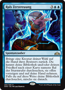 | Rules | Return target creature to its owner's hand. You may search your library and/or graveyard for a card named Ral, Caller of Storms, reveal it, and put it into your hand. If you search your library this way, shuffle. |