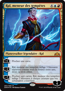 | Rules | +1: Draw a card. −2: Ral, Caller of Storms deals 3 damage divided as you choose among one, two, or three targets. −7: Draw seven cards. Ral, Caller of Storms deals 7 damage to each creature your opponents control. |