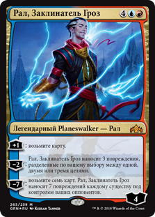 | Rules | +1: Draw a card. −2: Ral, Caller of Storms deals 3 damage divided as you choose among one, two, or three targets. −7: Draw seven cards. Ral, Caller of Storms deals 7 damage to each creature your opponents control. |