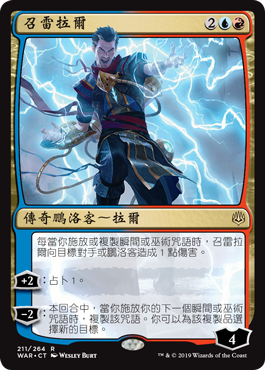 | Rules | Whenever you cast or copy an instant or sorcery spell, Ral, Storm Conduit deals 1 damage to target opponent or planeswalker. +2: Scry 1. −2: When you cast your next instant or sorcery spell this turn, copy that spell. You may choose new targets for the copy. |