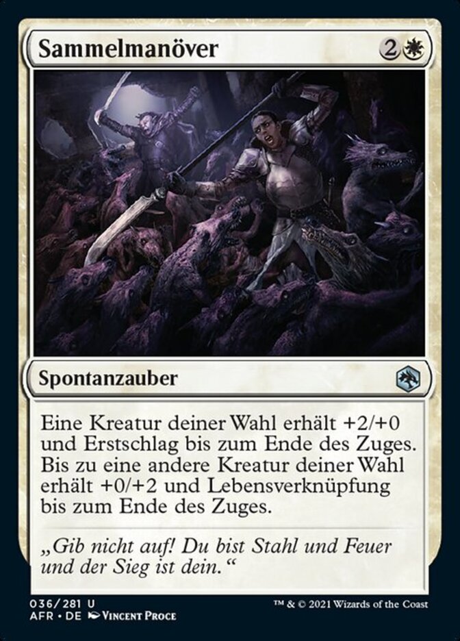 | Rules | Target creature gets +2/+0 and gains first strike until end of turn. Up to one other target creature gets +0/+2 and gains lifelink until end of turn. |