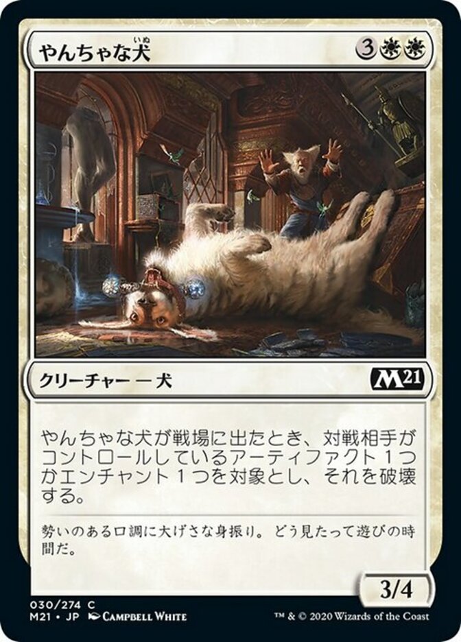 | Rules | When Rambunctious Mutt enters the battlefield, destroy target artifact or enchantment an opponent controls. |