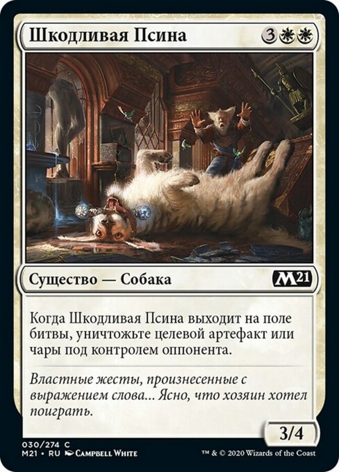 | Rules | When Rambunctious Mutt enters the battlefield, destroy target artifact or enchantment an opponent controls. |