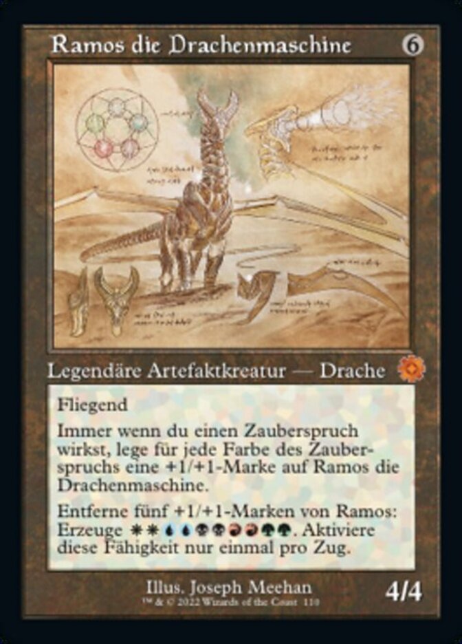 | Rules | Flying Whenever you cast a spell, put a +1/+1 counter on Ramos, Dragon Engine for each of that spell's colors. Remove five +1/+1 counters from Ramos: Add . Activate only once each turn. |