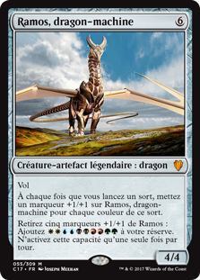 | Rules | Flying Whenever you cast a spell, put a +1/+1 counter on Ramos, Dragon Engine for each of that spell's colors. Remove five +1/+1 counters from Ramos: Add . Activate only once each turn. |