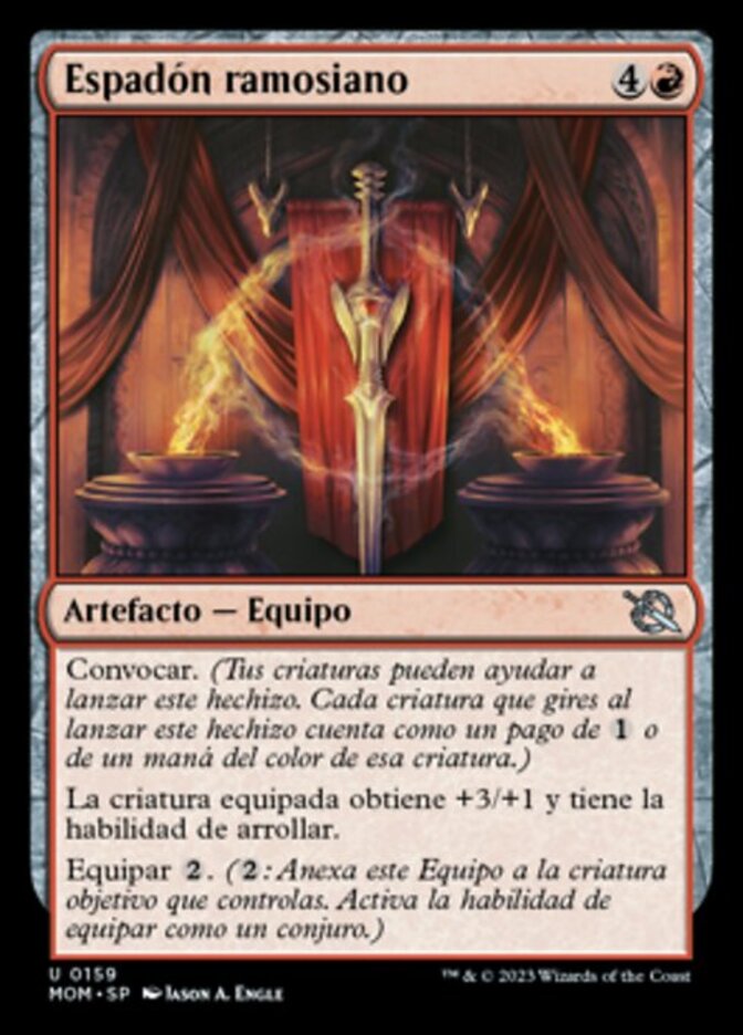 | Rules | Convoke (Your creatures can help cast this spell. Each creature you tap while casting this spell pays for 1 or one mana of that creature's color.) Equipped creature gets +3/+1 and has trample. Equip (: Attach to target creature you control. Equip only as a sorcery.) |