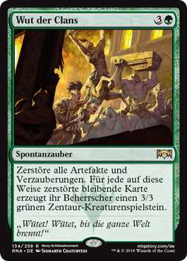 | Rules | Destroy all artifacts and enchantments. For each permanent destroyed this way, its controller creates a 3/3 green Centaur creature token. |