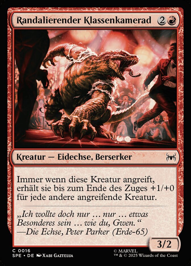 | Flavor | "I just . . . just . . . wanted to be special . . . like you, Gwen." —Lizard, Peter Parker (Earth-65) |