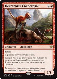 | Rules | Menace Players can't gain life. Whenever another creature enters the battlefield, Rampaging Ferocidon deals 1 damage to that creature's controller. |