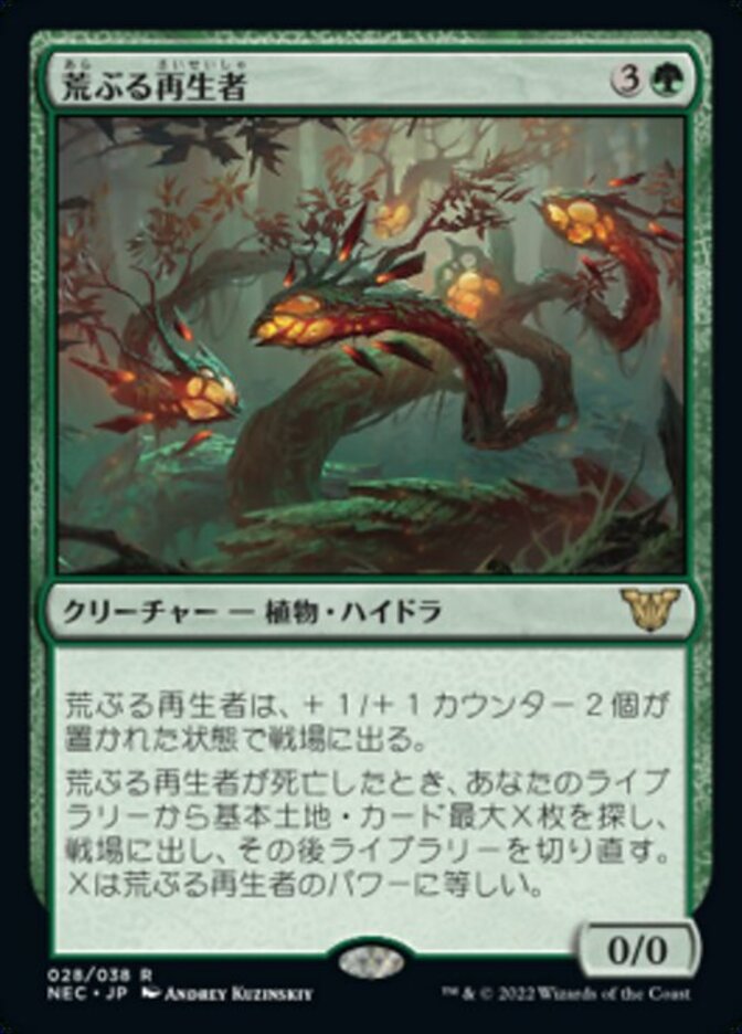 | Rules | Rampant Rejuvenator enters the battlefield with two +1/+1 counters on it. When Rampant Rejuvenator dies, search your library for up to X basic land cards, where X is Rampant Rejuvenator's power, put them onto the battlefield, then shuffle. |